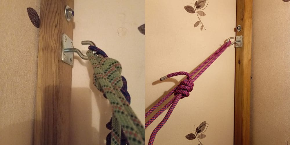 - Vérifiez l’état des cordes ou des sangles du hamac, en particulier là où elles se connectent aux crochets ou supports. Privilégiez des cordes ou des sangles utilisées pour l’escalade qui sont conçus pour supporter des contraintes bien plus fortes que celles d’un hamac.